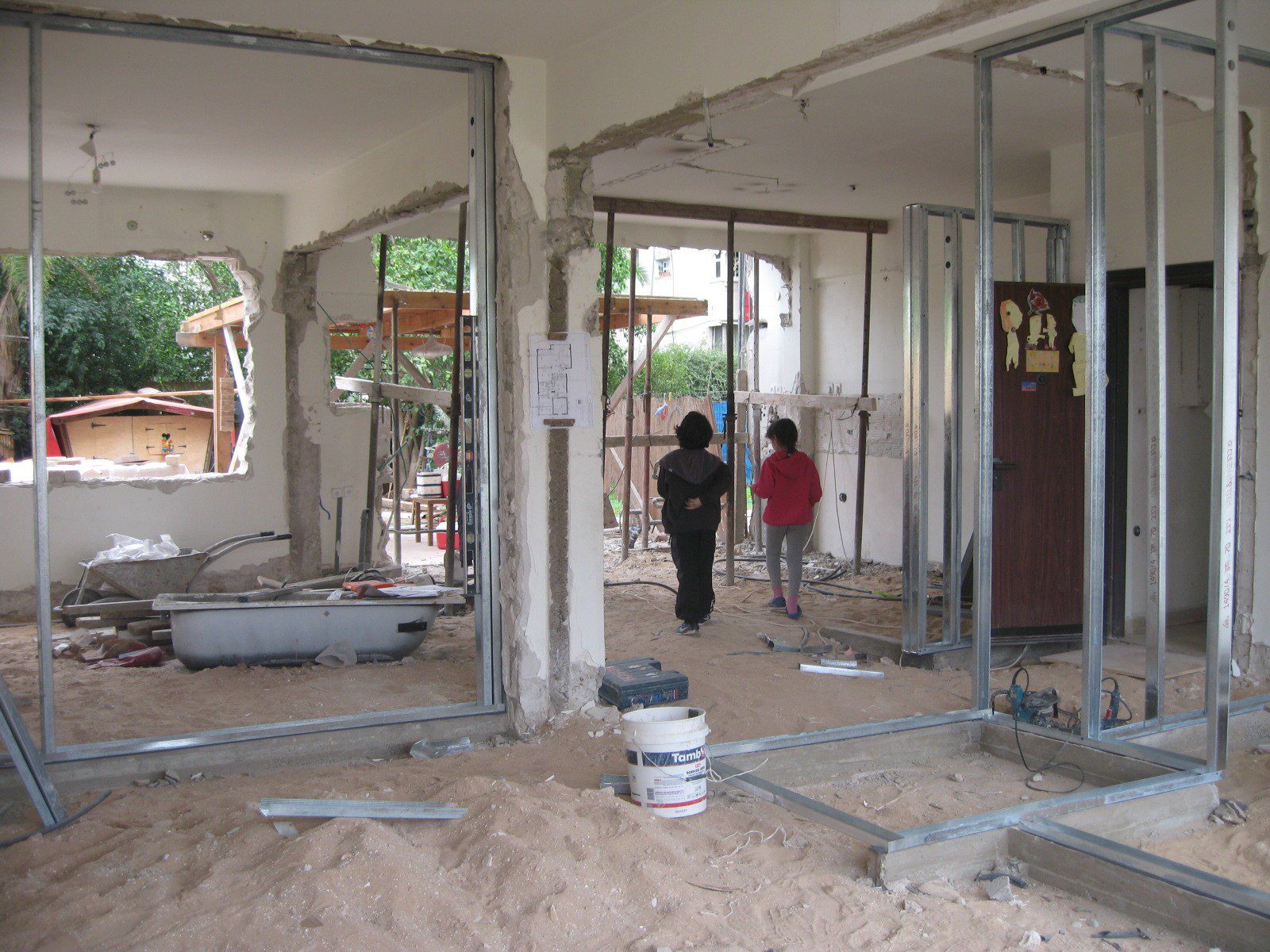 הדירה נהנית ממסדרון אוויר קסום שזורם ממערב למזרח – רוח הים נכנסת ומביאה איתה את גווני השקיעה שמשפיעים על צבע הקירות לאורך היום ומכניסים לבית צבעוניות טבעית משתנה. המסדרון מוליך מהאזור הפרטי למרכזי, ובכוונה השארתי חריצים בקיר כדי לא לפגוע במשב האוויר הטבעי הזה.