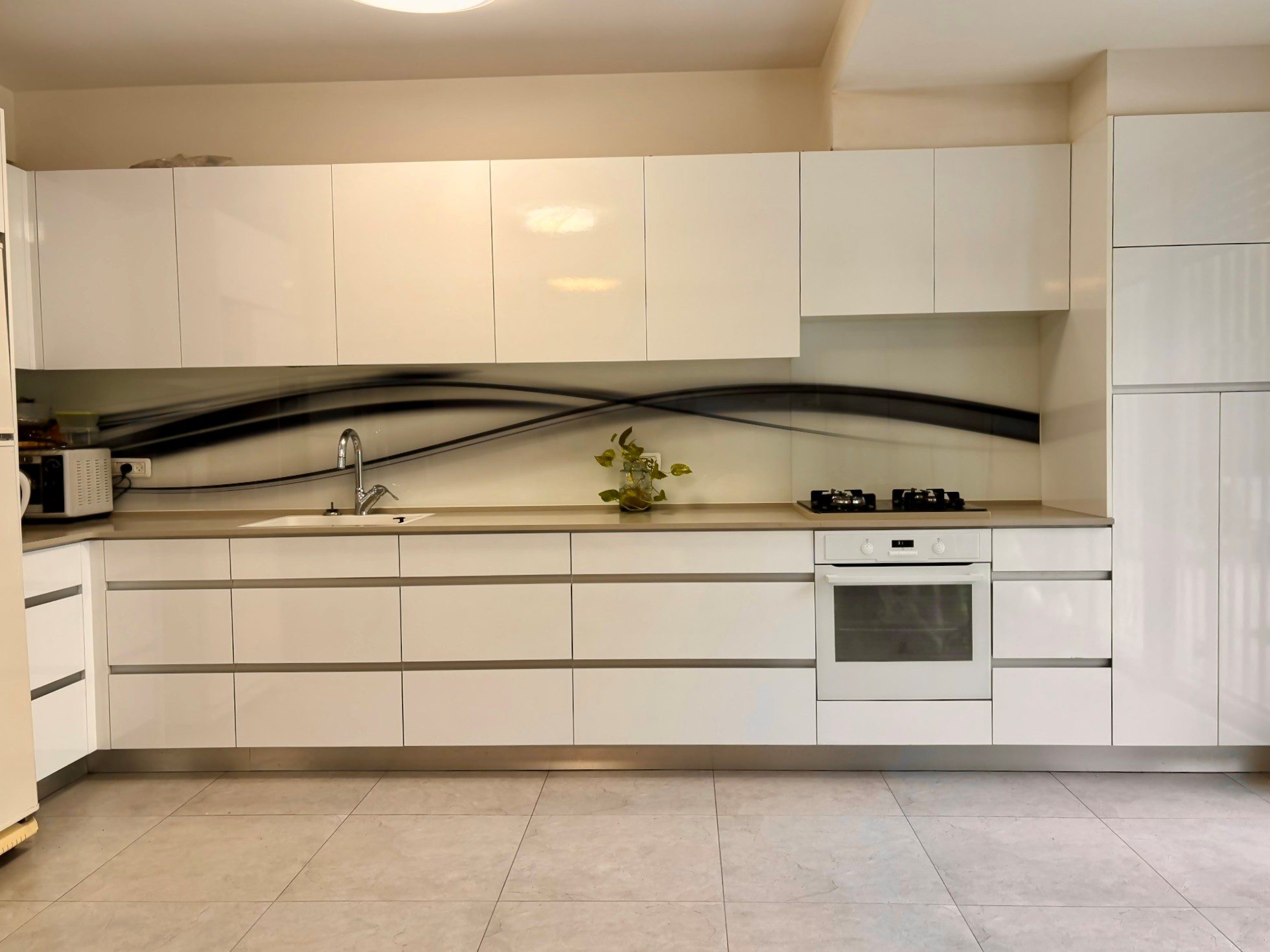 למטבח הוספתי יציאה גדולה לחצר, שמכניסה אור טבעי נפלא ויוצרת קשר ישיר עם החוץ. התוצאה – דירה מוארת מאוד שמזמינה להיות בה ומתפקדת הרבה יותר טוב לחיי המשפחה.